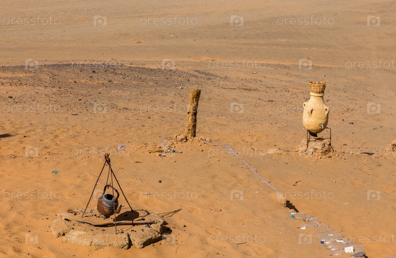 Чайник и кувшин на фоне песка