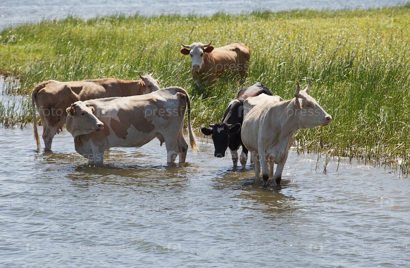 Коровы купаются в озере