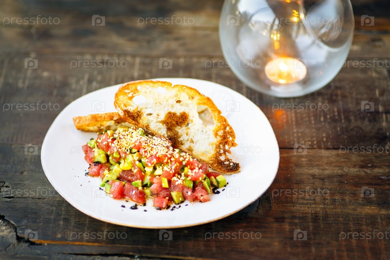 Тартар из лосося с авокадо на гренке