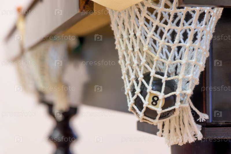 Черный бильярдный шар номер 8 в лузе