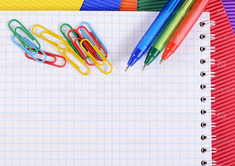 Скрепки и ручки на блокноте