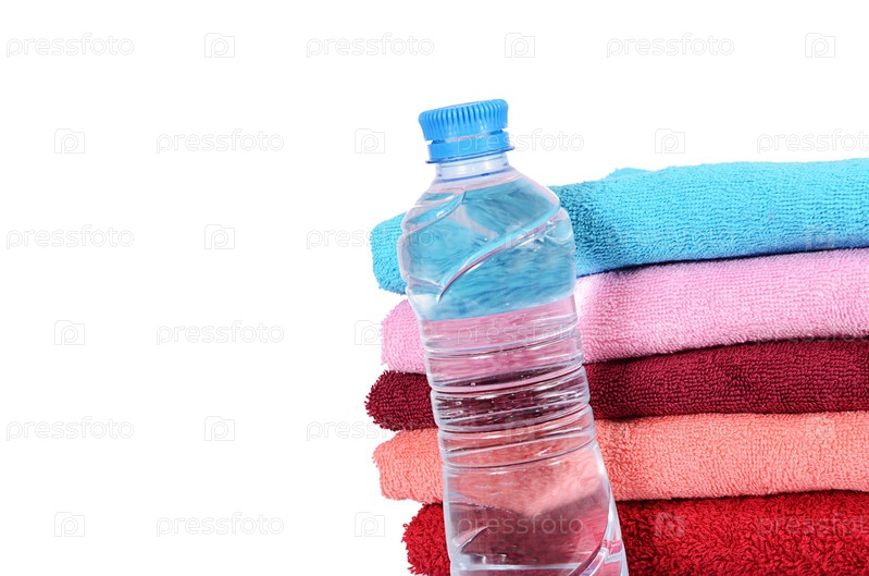 Полотенца и бутылка воды