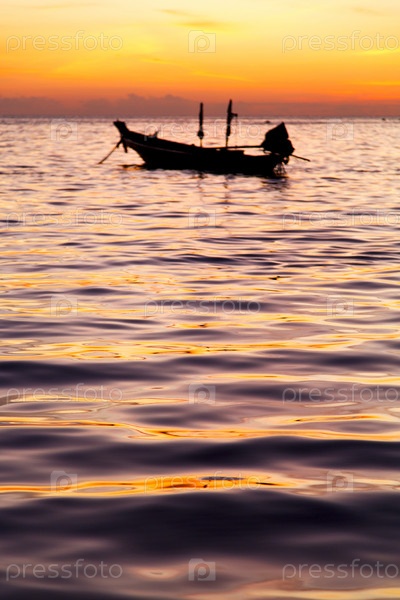 Лодка в Китайском море на закате