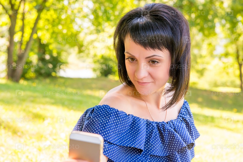 Красивая брюнетка в парке