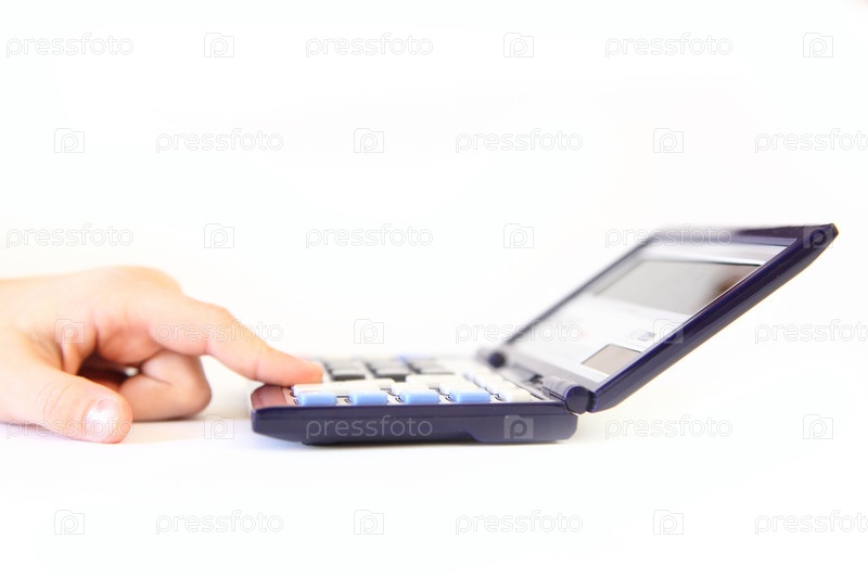 Ребенок нажимает на кнопку калькулятора