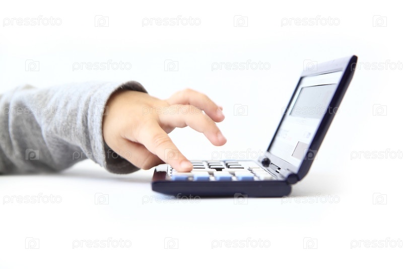 Ребенок нажимает на кнопку калькулятора