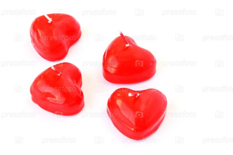 Красные свечи в форме сердечек, изолированы на белом фоне