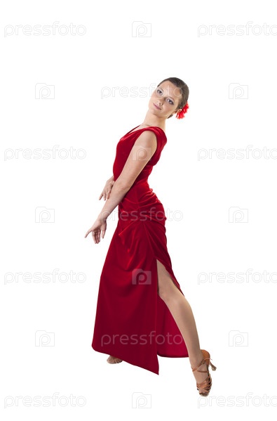 Женщина-танцовщица в красном платье