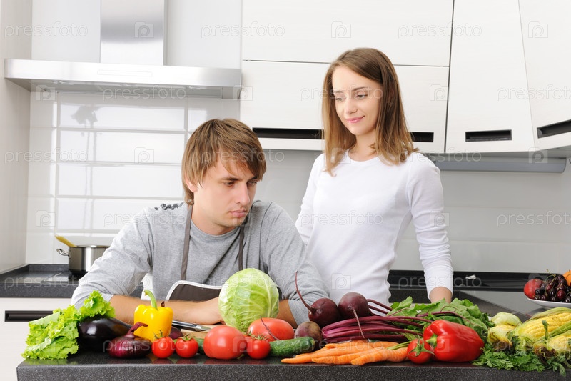 Молодая пара на кухне
