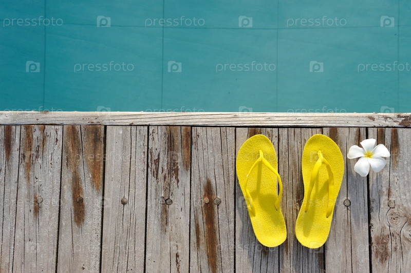 Желтые женские сланцы возле бассейна
