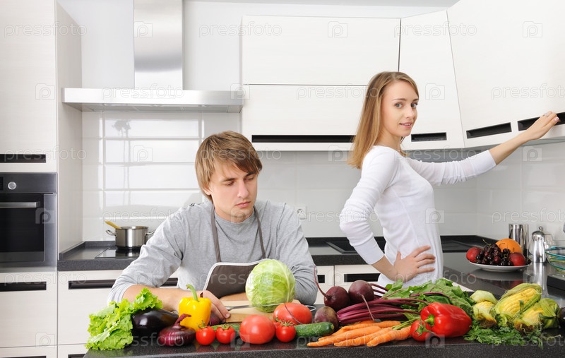 Молодая пара на кухне
