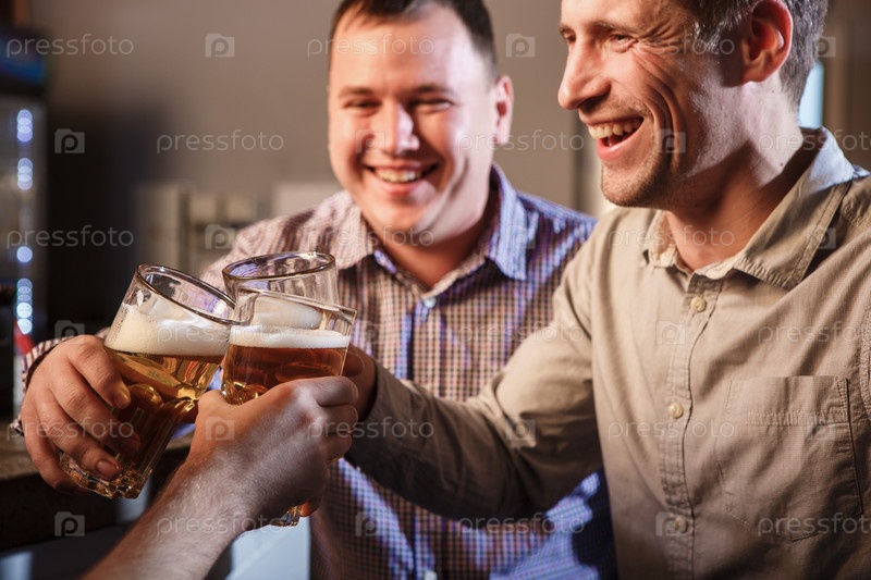 Счастливые друзья в пабе