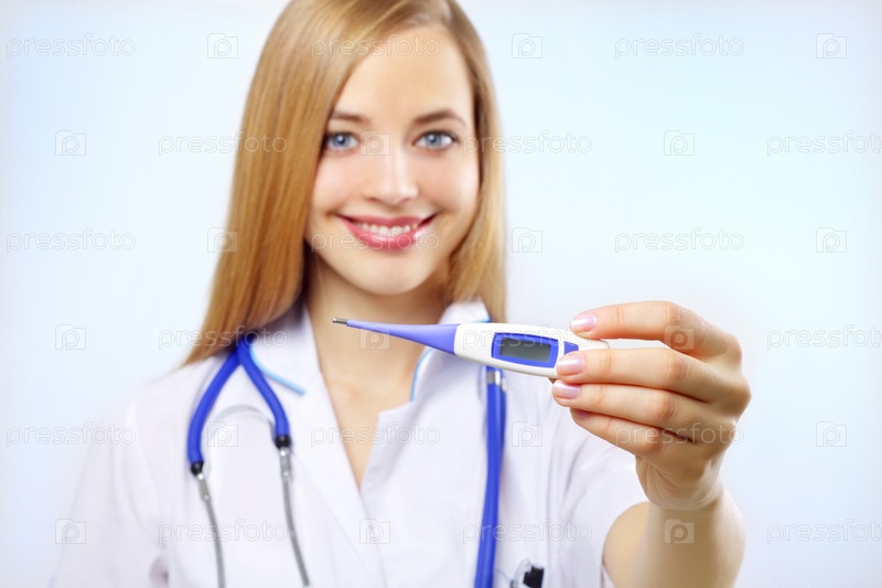 Медсестра с цифровым термометром