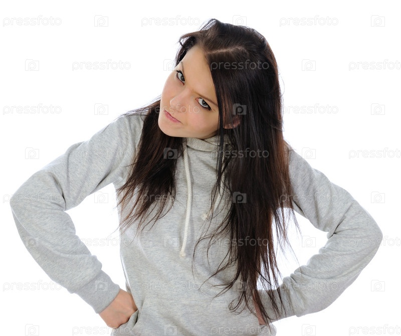 Разгневанная девушка на белом фоне