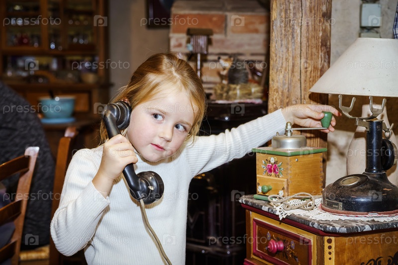 Девочка с ретро телефоном