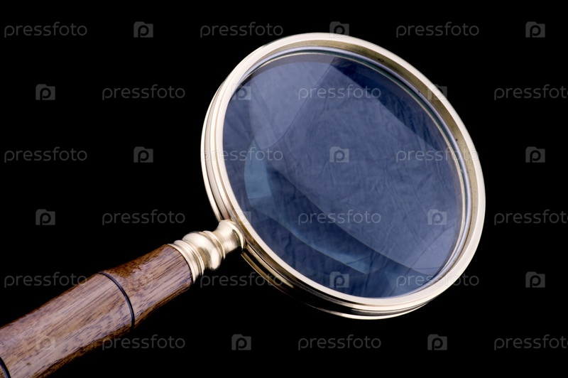 Увеличительная лупа на черном фоне