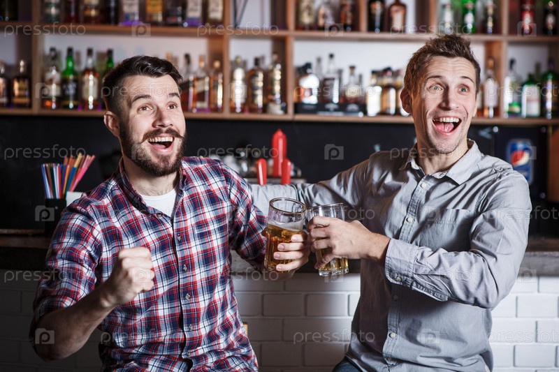 Молодые люди с пивом в баре