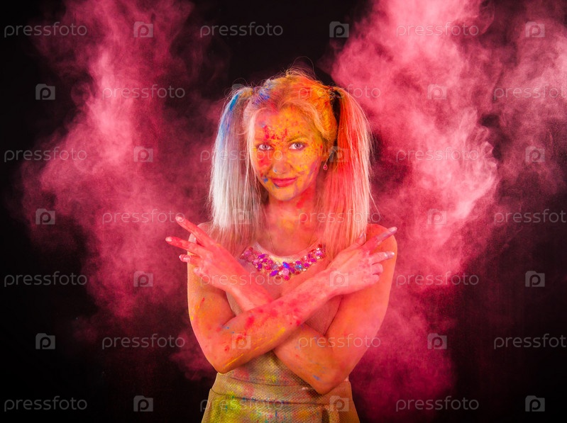 Молодая женщина в разноцветной краске
