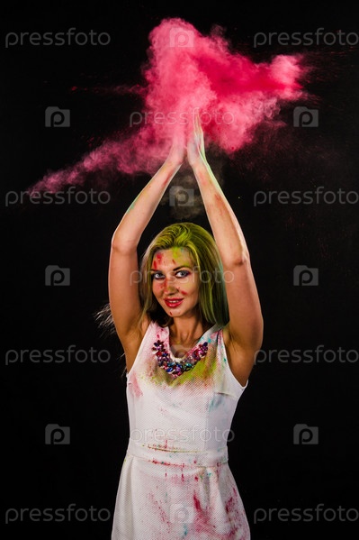 Красивая молодая женщина с цветным порошком