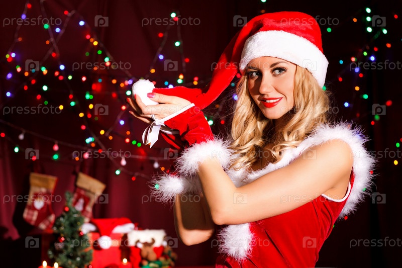 Красивая молодая женщина в рождественской одежде