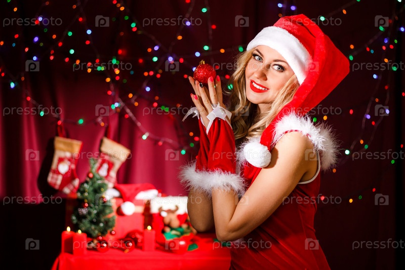 Красивая молодая женщина в рождественской одежде
