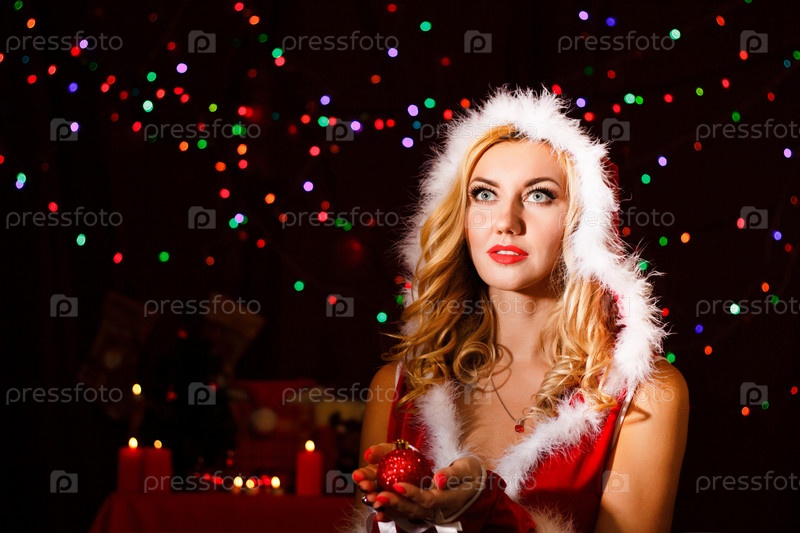 Красивая молодая женщина в рождественской одежде