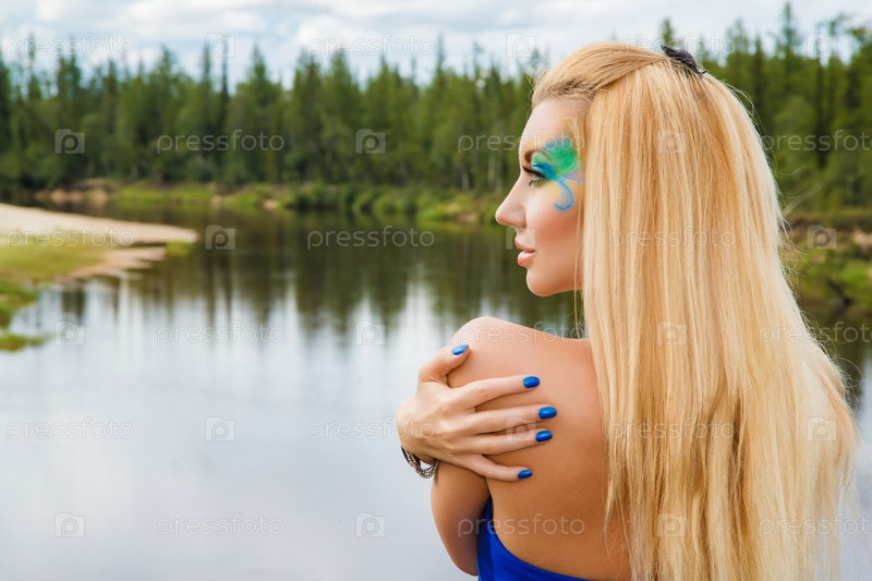 Красивая женщина возле реки