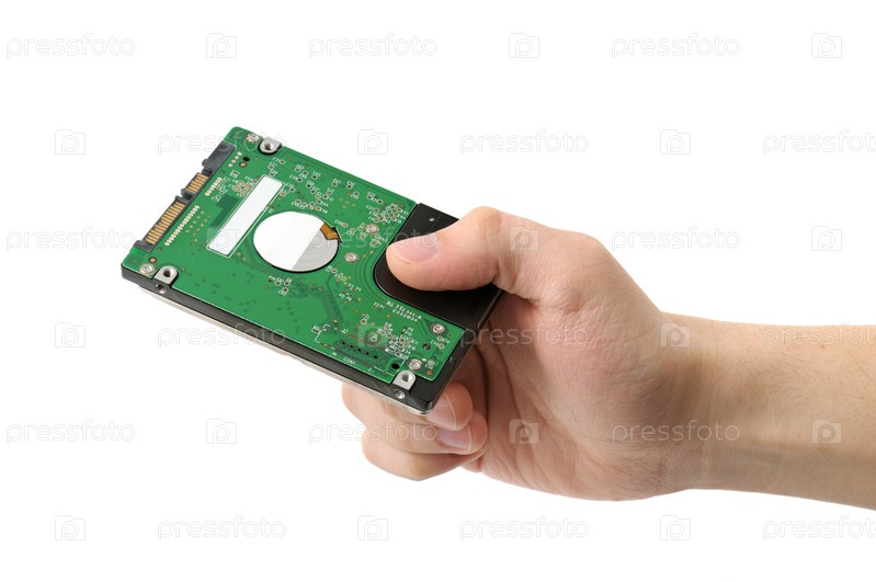Жесткий диск в рук на белом фоне