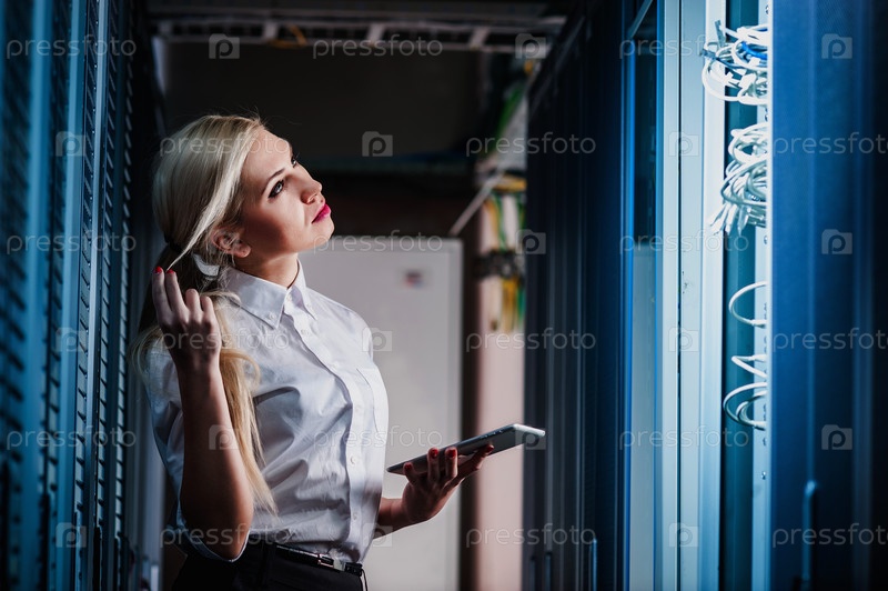 Молодой инженер в серверной комнате