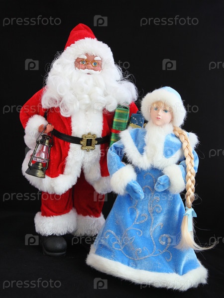 Снегурочки и дед мороз на черном фоне