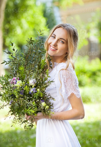 Невеста с букетом цветов в стиле бохо