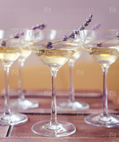 Бокалы шампанского оформленные лавандой