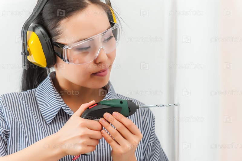 Молодая женщина с дрелью