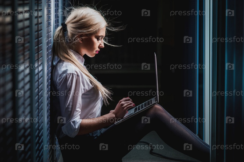 Молодой инженер в серверной комнате
