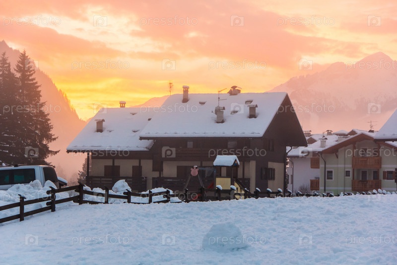 Розовый закат в горах