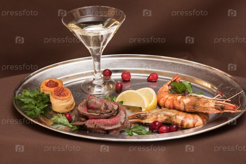 Жареные креветки и говяжье мясо