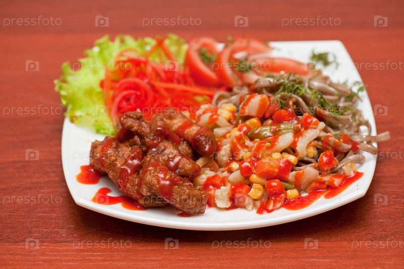 Китайская лапша с жареным мясом и овощами