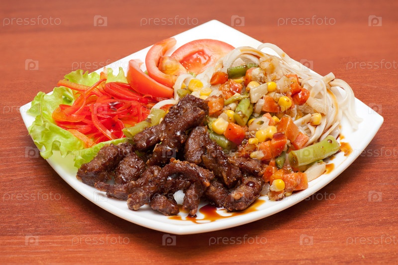 Китайская лапша с жареным мясом и овощами