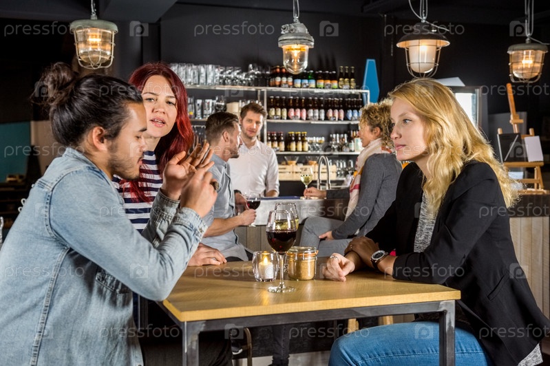 Друзья, беседуя в баре