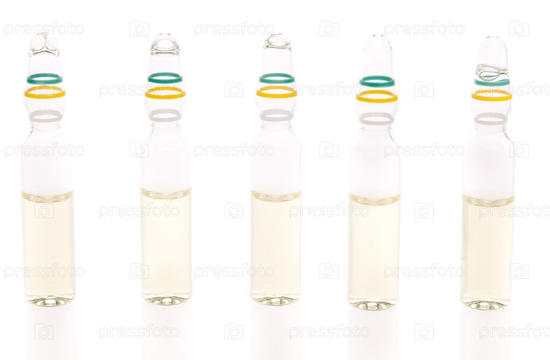 Пять ампул на белом фоне