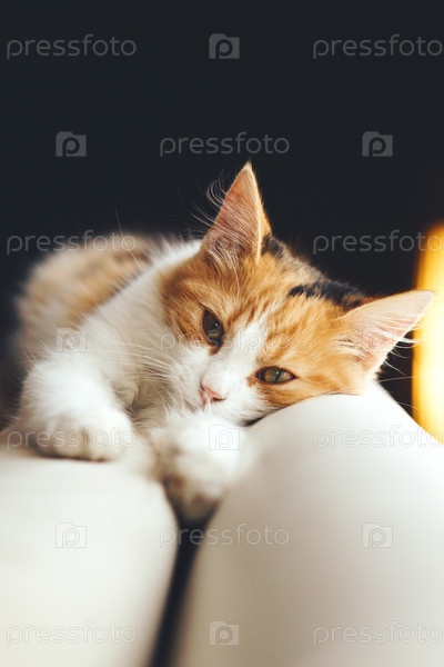 Кошка, отдыхая дома