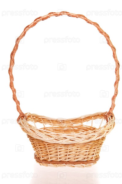 Пустая плетеная корзина на белом фоне