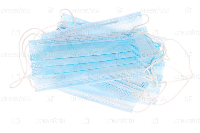 Одноразовые медицинские маски на белом фоне