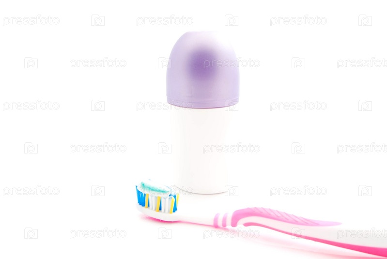 Дезодорант и розовая зубная щетка