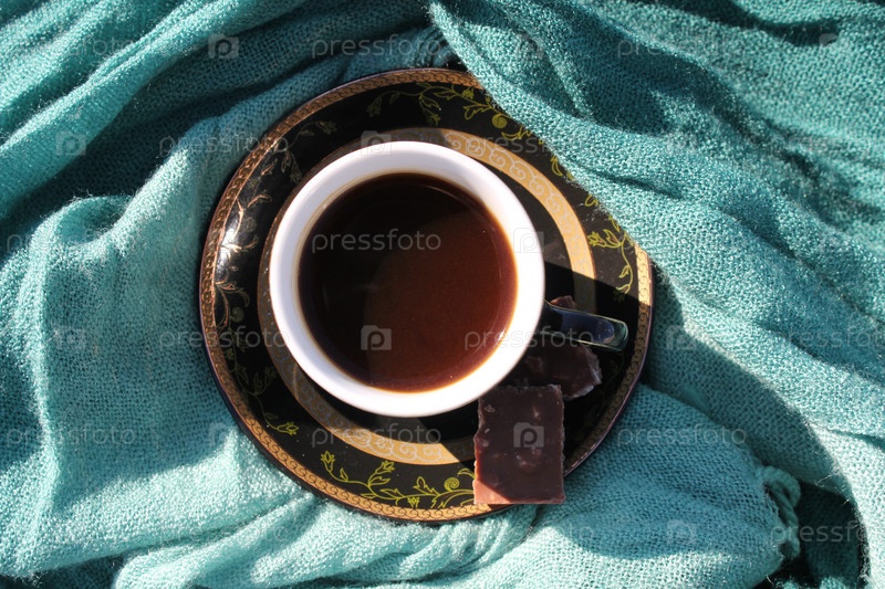 Чашка кофе на ткани
