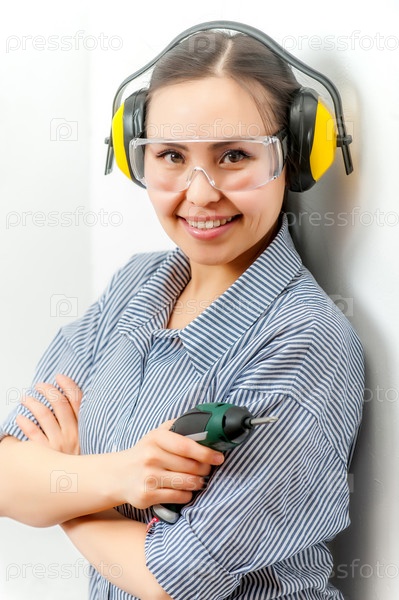 Молодая женщина с дрелью