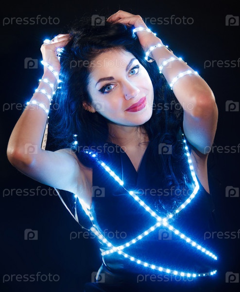 Красивая молодая брюнетка с огоньками на теле
