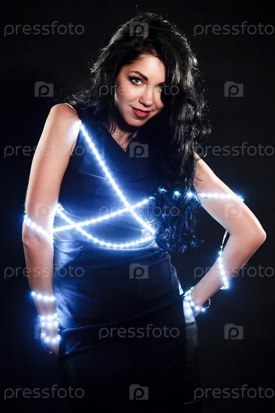 Красивая молодая брюнетка с огоньками на теле