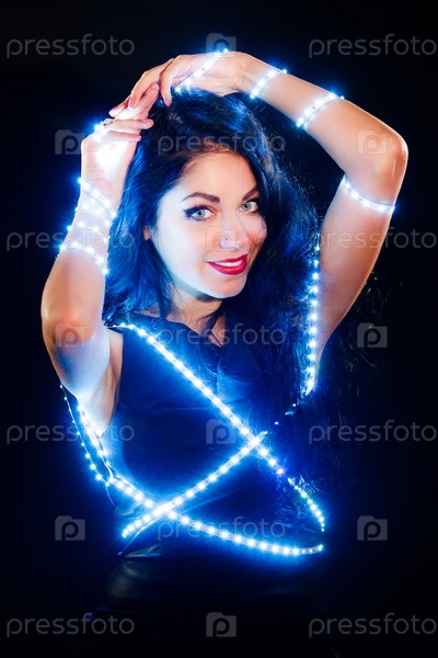Красивая молодая брюнетка с огоньками на теле