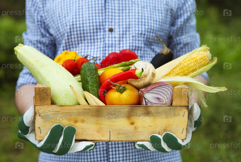 Фермер с корзиной овощей